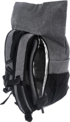 Rolowane wieko z klamrą i zamkiem pozwala łatwo dostosować pojemność plecaka oraz bezpiecznie chronić zawartość w ruchu – w mieście i w terenie.