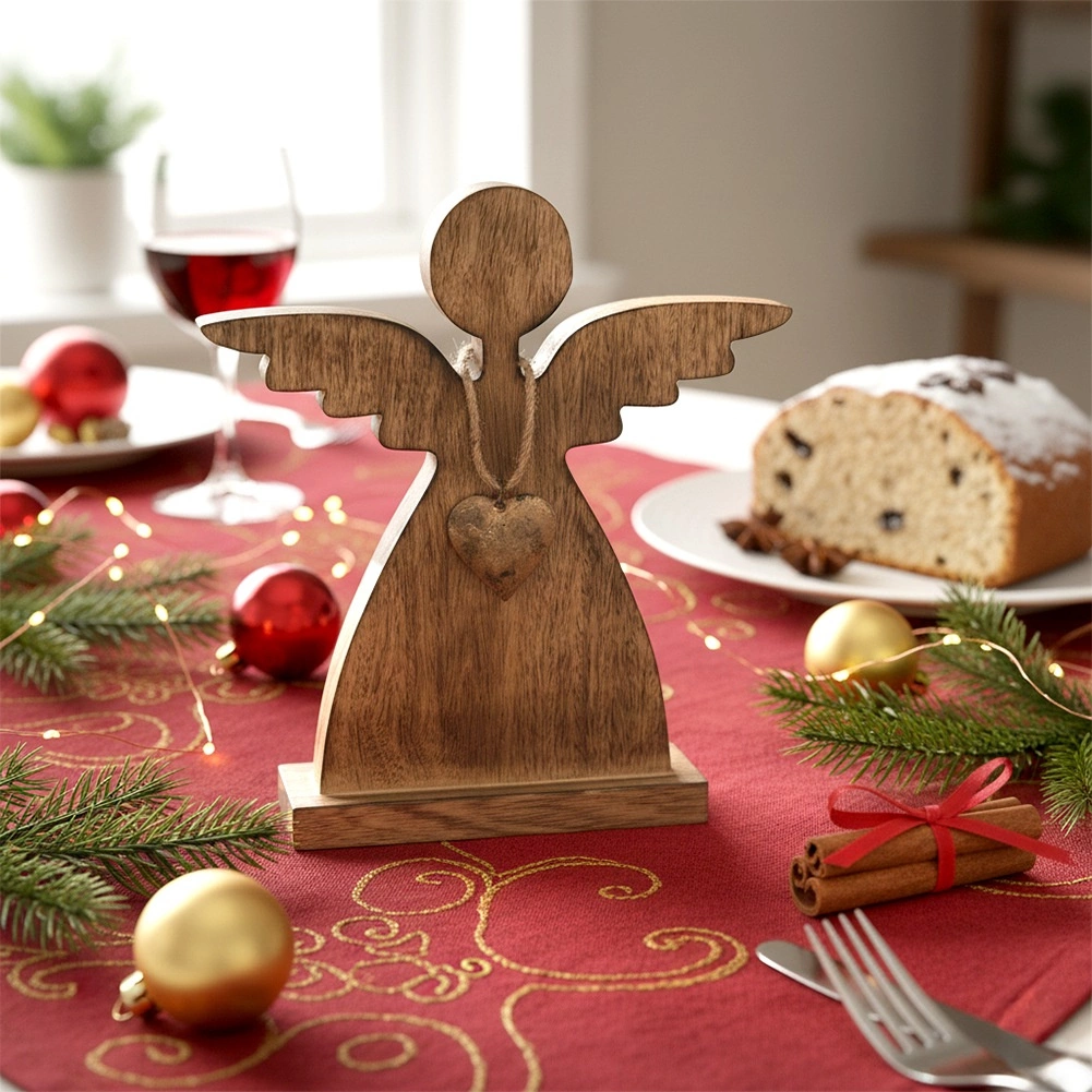 Anioł jako efektowny element centralny na bożonarodzeniowej lub zimowej aranżacji stołu. Doda ciepła i nastroju.