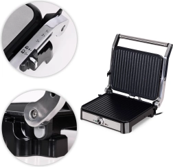 - Regulowana wysokość pokrywy do cienkich kanapek i wysokich steków
