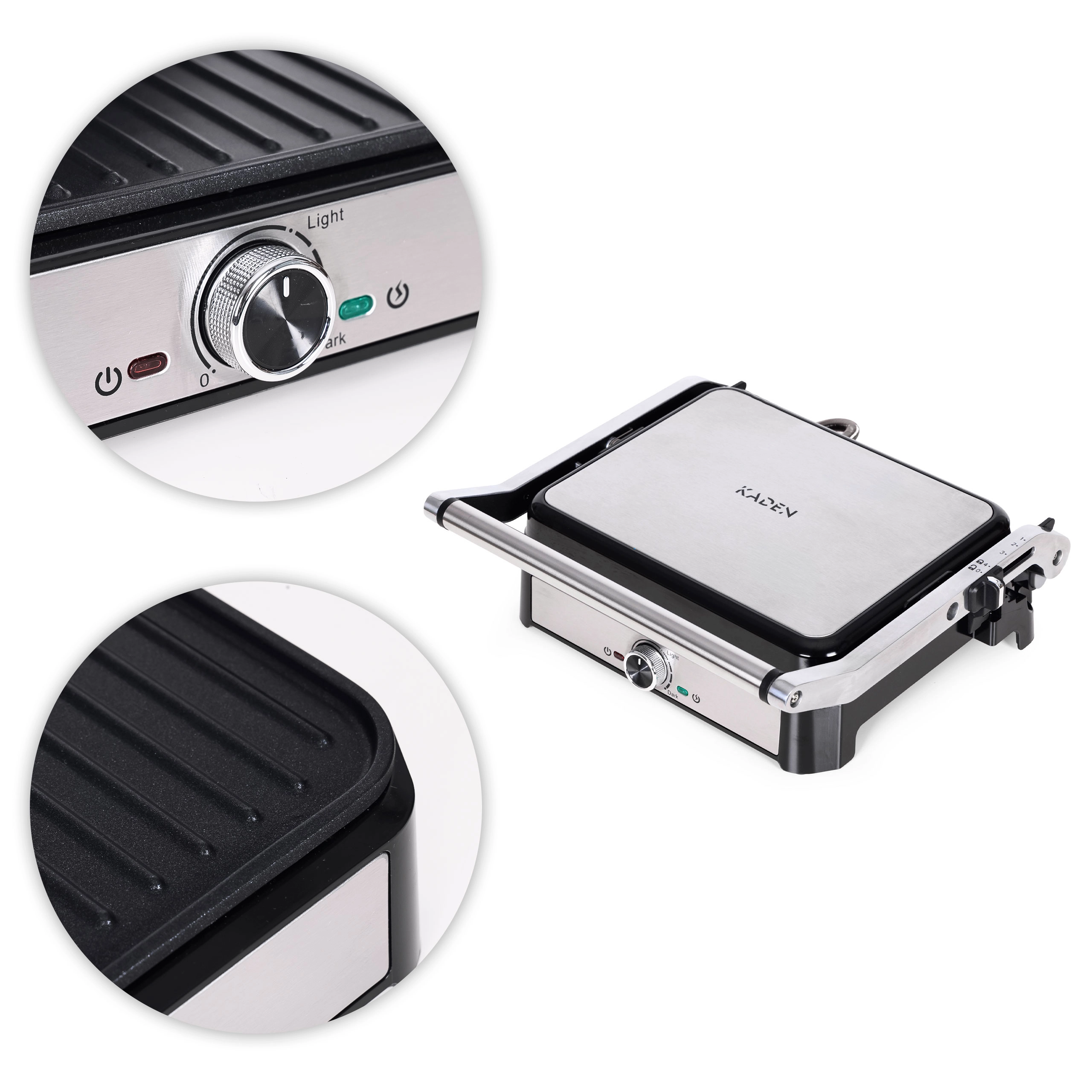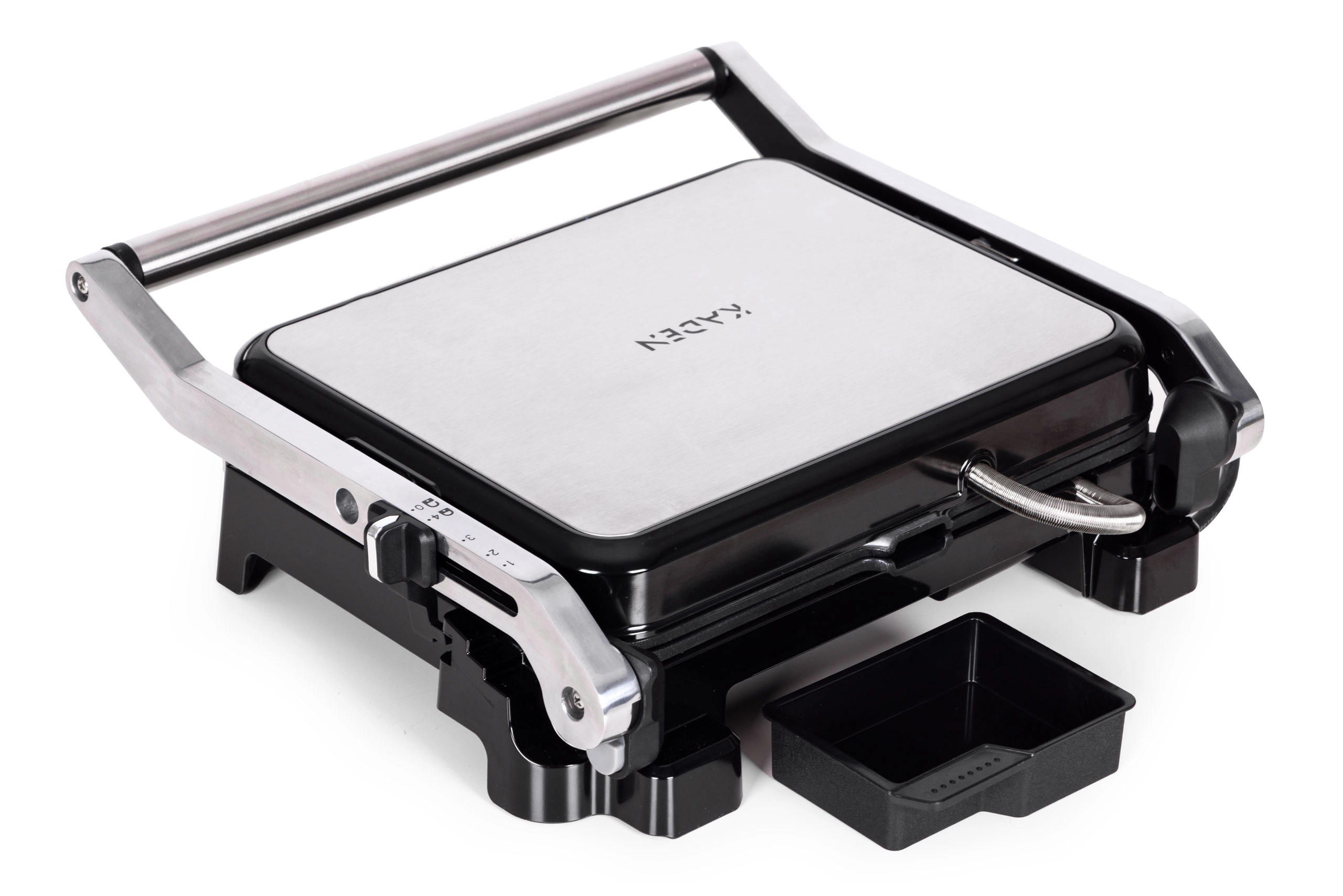 Ciesz się domowym grillowaniem przez cały rok. Grill kontaktowy KADEN łączy szybkie nagrzewanie, równomierne rozprowadzanie ciepła oraz praktyczne detale, które czynią go idealnym wyborem do panini, tostów, mięs i warzyw. Ryflowane płyty pozostawiają atrakcyjny wzór kratki i pomagają odprowadzać nadmiar tłuszczu do wyjmowanej tacki.
