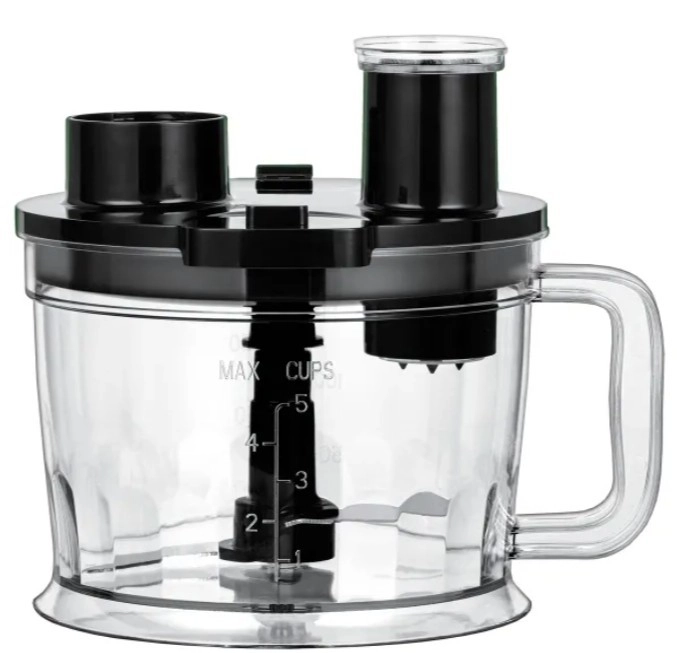 - Nierdzewna końcówka blendująca, rozdrabniacz 1,25 l, dwustronna tarcza do krojenia, kubek miarowy