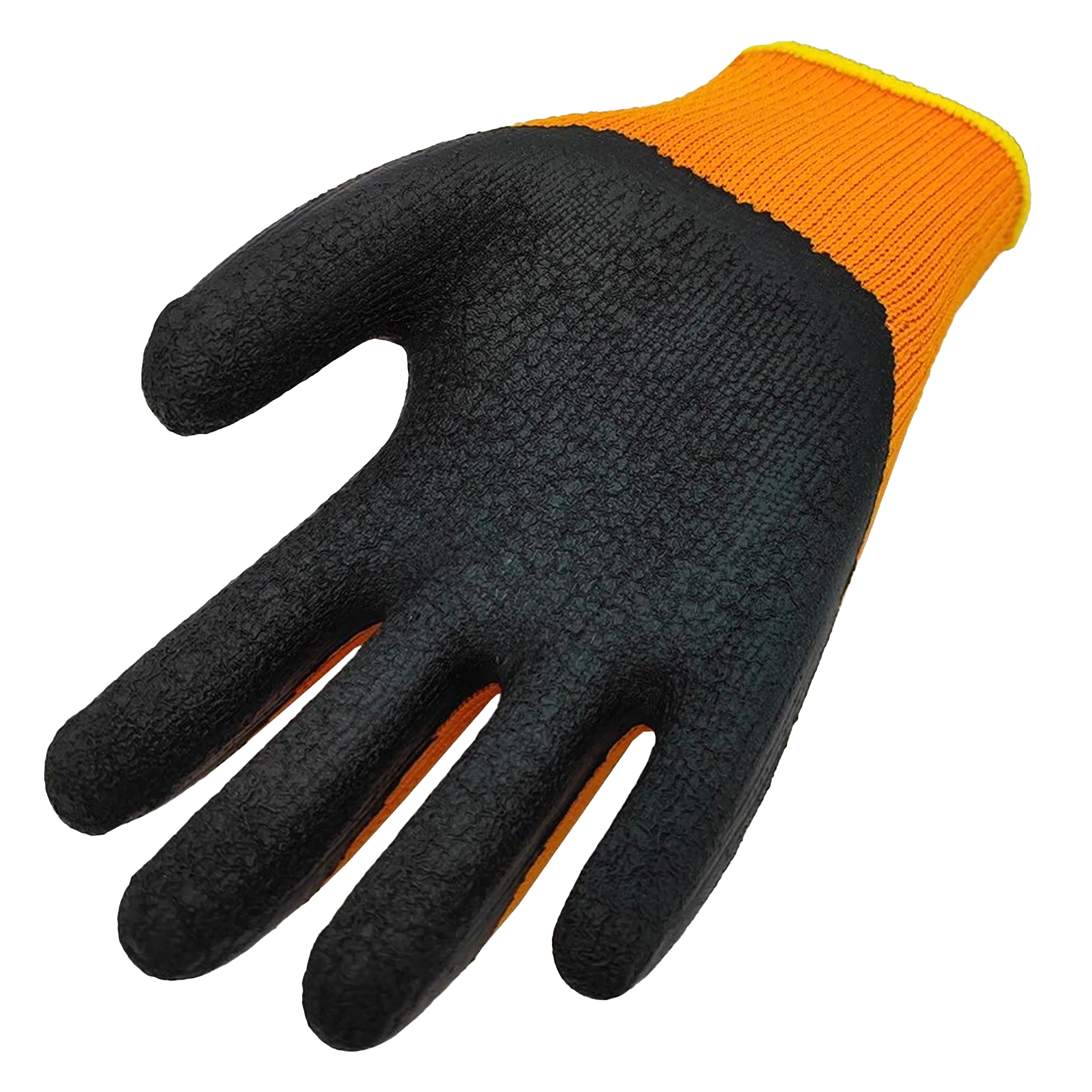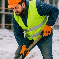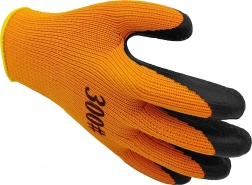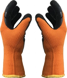 Praktyczne rękawice na sezon zimowy zapewniają pewność chwytu przy pracy z narzędziami i materiałami. Grubsza akrylowa dzianina grzeje, a teksturowany lateks na dłoni i palcach oferuje znakomitą przyczepność także na wilgotnych powierzchniach. Wysoka widoczność pomarańczowego koloru i elastyczne mankiety zapewniają bezpieczne i stabilne ułożenie na dłoni.