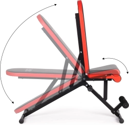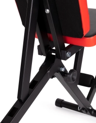 Oparcie oferuje aż 6 poziomów nachylenia, a siedzisko 2 pozycje. Dzięki temu łatwo przełączysz się między ławką płaską a skośną i skutecznie ukierunkujesz różne partie mięśni klatki i brzucha.