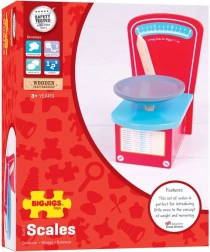 Ta w pełni drewniana, funkcjonalna waga od Bigjigs Toys to idealne uzupełnienie dziecięcej kuchni. Dzieci podczas zabawy w gotowanie ćwiczą liczenie, szacowanie wagi oraz umiejętności społeczne podczas wspólnej zabawy.