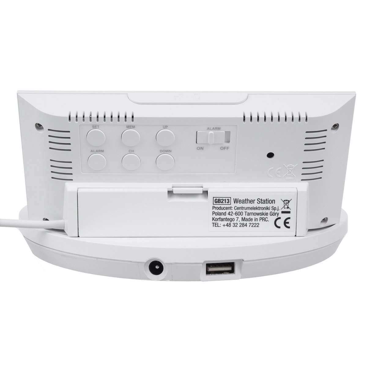 Stylowa stacja pogodowa GB213 jest idealna do inteligentnego domu. Duży kolorowy wyświetlacz jednocześnie pokazuje temperaturę i wilgotność wewnątrz i na zewnątrz, ciśnienie atmosferyczne oraz trend, uzupełnione o graficzne ikony prognozy. Zintegrowana ładowarka Qi umożliwia szybkie i wygodne ładowanie kompatybilnych smartfonów bez kabli, a do dyspozycji jest także port USB (5 V / 1 A) do ładowania przewodowego.