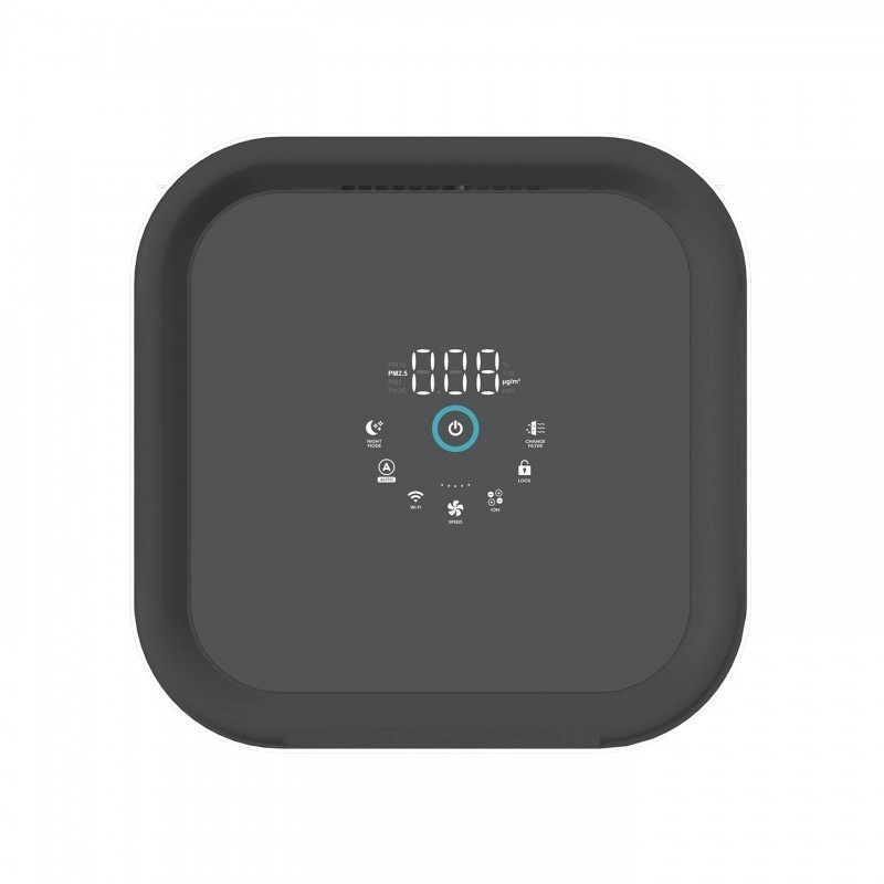 Wydajny oczyszczacz powietrza do pomieszczeń o powierzchni do 80 m² łączy 5‑stopniową filtrację (przedsitko, HEPA, filtr węglowy, UV‑C LED, Plasma ION) z sterowaniem Wi‑Fi przez aplikację mobilną. Wychwytuje do 99,95% cząstek do 0,3 µm, w tym PM1/PM2.5/PM10, alergeny, bakterie, wirusy oraz zapachy i w czasie rzeczywistym wyświetla jakość powietrza na kolorowym ekranie dotykowym.
