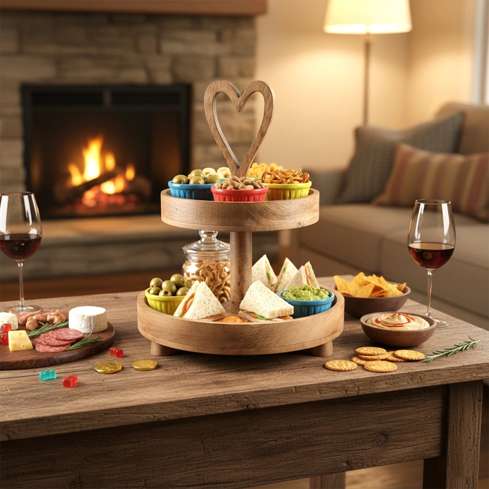 Średnice 29,5 cm i 20 cm z krawędziami o wysokości 3,5 cm bezpiecznie utrzymują desery i koreczki na miejscu oraz poprawiają organizację na stole.