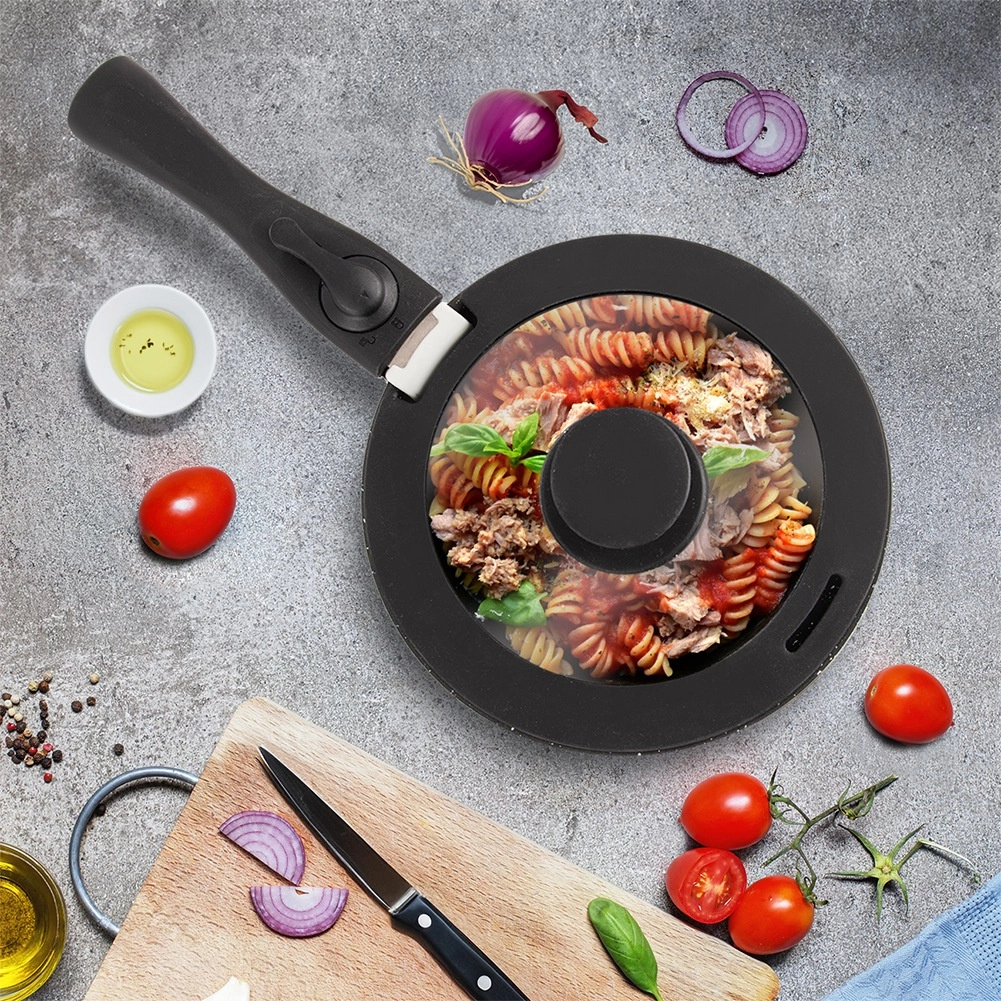 Dzięki podłużnemu otworowi do odprowadzania pary zmniejsza ryzyko wykipienia i pomaga także przy odlewanej płynów. Specjalne boczne wycięcie jest zaprojektowane do patelni i garnków z odpinaną rączką, dzięki czemu pokrywkę można używać również w piekarniku do 220 °C.
