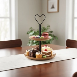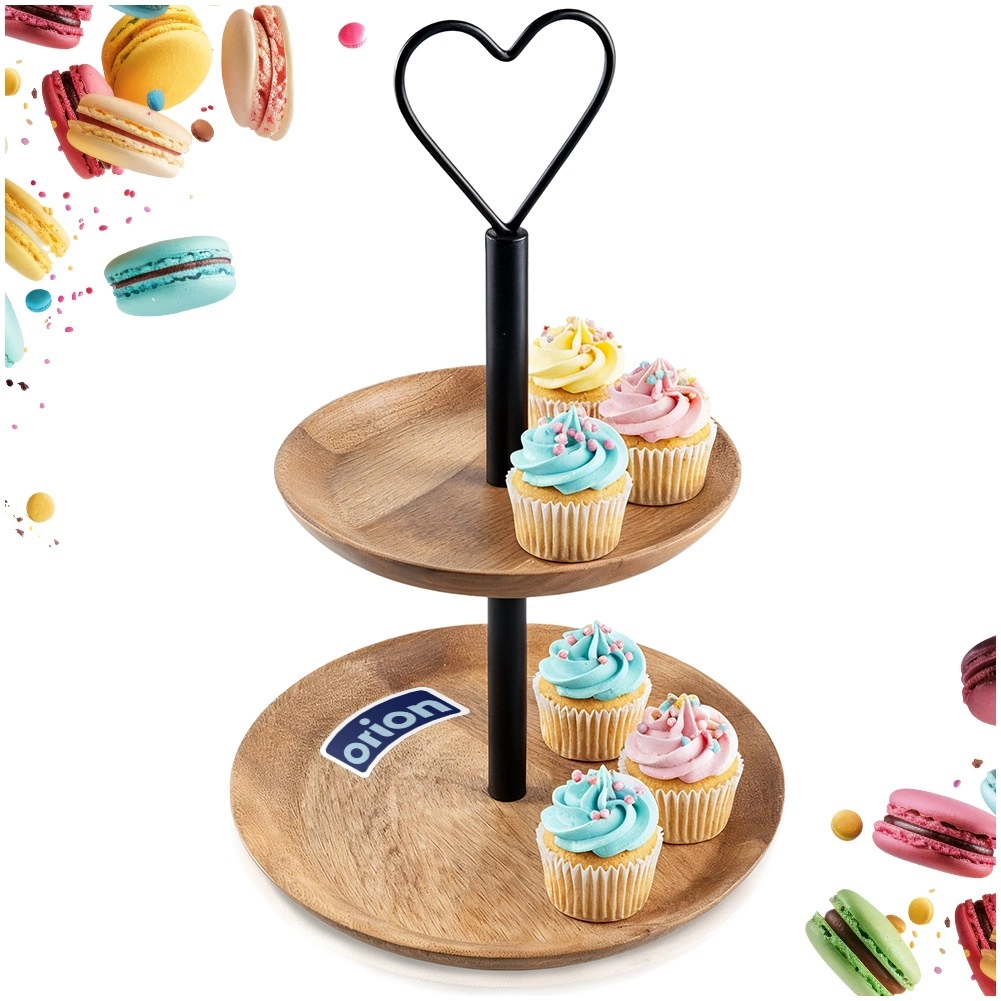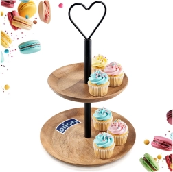 Elegancka patera w stylu loft łączy naturalne piękno drewna mango z czarnym metalem i stanie się ozdobą każdego stołu. Dwa poziomy pozwalają efektownie wyeksponować babeczki, ciasteczka, makaroniki, owoce, kanapki i przystawki – perfekcyjna na przyjęcia, sweet bary i codzienne posiłki.