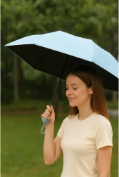 Szukasz parasola, który jest mały do torby, ale duży możliwościami? Ten kompaktowy składany parasol w eleganckim pastelowym niebieskim kolorze oferuje niezawodną ochronę przed deszczem i słońcem. Wewnętrzna ciemna warstwa pomaga ograniczać olśnienie, a certyfikowana ochrona UV UPF 50+ chroni skórę w słoneczne dni.