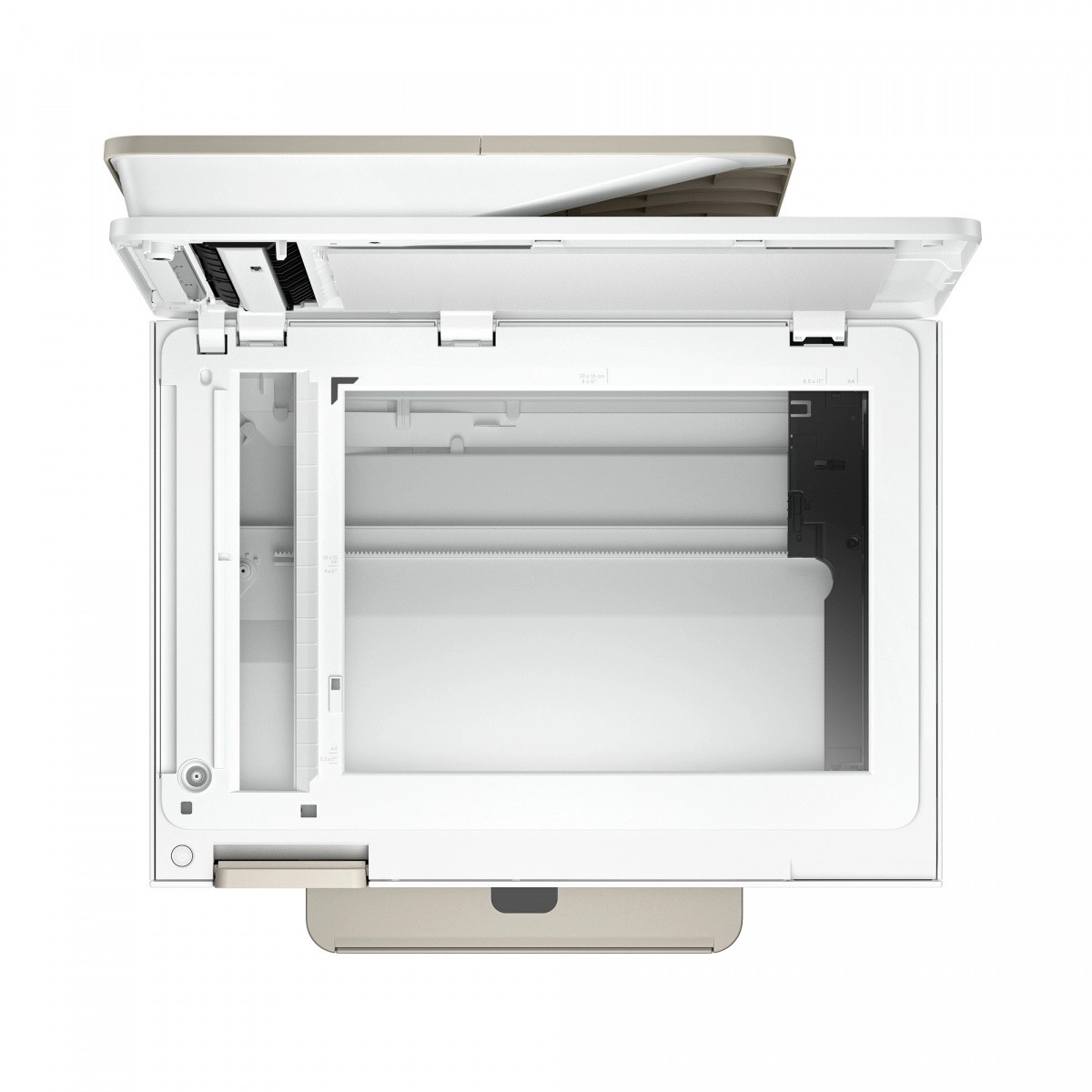 Wsparcie dla dwuzakresowego Wi‑Fi i aplikacji HP Smart umożliwia wygodne sterowanie i druk z telefonu lub tabletu. Automatyczny podajnik dokumentów (ADF) na 35 arkuszy przyspiesza obsługę wielostronicowych zadań, a oddzielny podajnik na papier fotograficzny ułatwia przełączanie między dokumentami a zdjęciami.