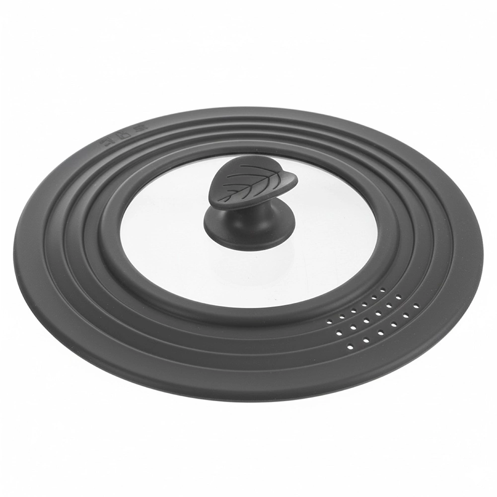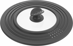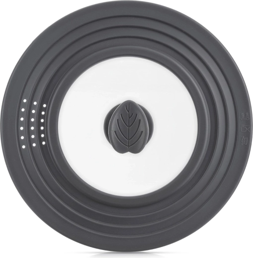 Ta uniwersalna pokrywka 3 w 1 zastępuje trzy oddzielne wieka, oszczędzając miejsce w Twojej kuchni. Dzięki wytrzymałemu szkłu i szaremu silikonowemu rantowi idealnie przylega do krawędzi garnków i patelni, chroni je przed uszkodzeniami i zapewnia szczelność. Przezroczyste szkło umożliwia kontrolę gotowania bez podnoszenia.