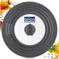 Praktyczna uniwersalna pokrywka z silikonową krawędzią i przezroczystym szkłem pasuje do naczyń o średnicy 20, 22 i 24 cm. Oszczędza miejsce, zapewnia szczelne przyleganie, ma otwory odprowadzające parę oraz ergonomiczny uchwyt. Oryginalny produkt marki ORION.