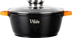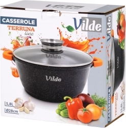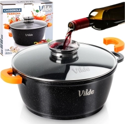 Odkryj wszechstronny garnek VILDE z linii TERRUNA AROMA, idealny do codziennego gotowania. Dzięki masywnemu aluminiowemu odlewowi z nieprzywierającą powłoką granitową przygotujesz zupy, gulasze, dania duszone oraz zapiekanki delikatnie i równomiernie. Szklana pokrywka z dużym uchwytem i praktycznym dozownikiem umożliwia dolewanie wody, wina lub innych płynnych przypraw bez podnoszenia pokrywki.