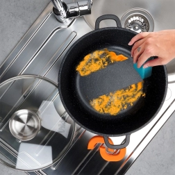 Granitowa powierzchnia ogranicza przypalanie i ułatwia czyszczenie. Garnek można myć w zmywarce i bez trudu znosi codzienne użytkowanie.