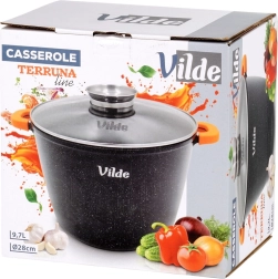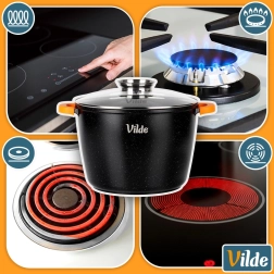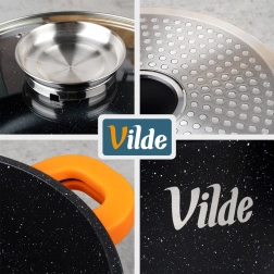 Uniwersalne zastosowanie: gaz, prąd, płyta ceramiczna, indukcja oraz pieczenie w piekarniku do 200 °C (bez pokrywki). Oryginalny produkt marki VILDE z linii TERRUNA AROMA.