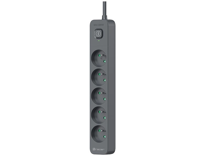 Niezawodna ochrona przeciwprzepięciowa dla domowej elektroniki. TRACER Power Line+ oferuje 5 uziemionych gniazd, kabel 1,8 m, maks. moc 3680 W oraz automatyczny wyłącznik z podświetlanym przełącznikiem dla prostego i bezpiecznego użytkowania.