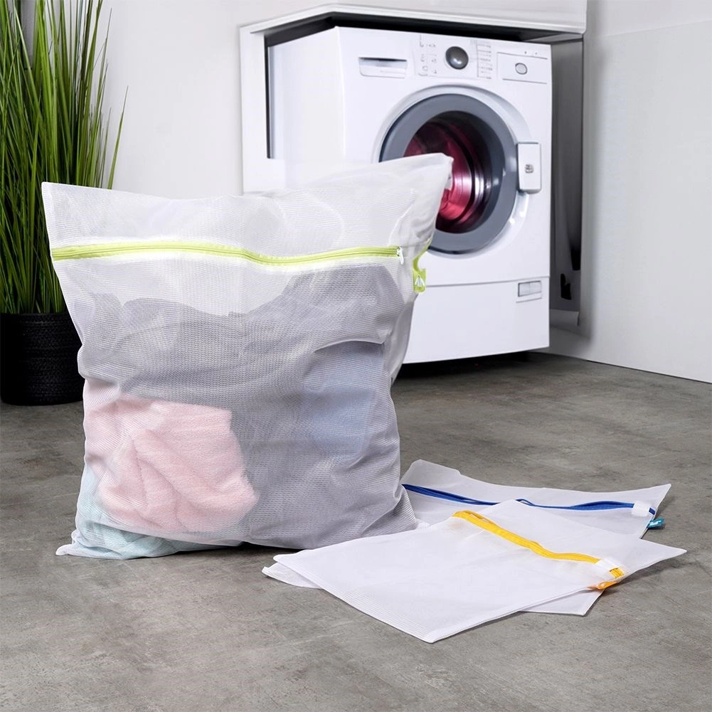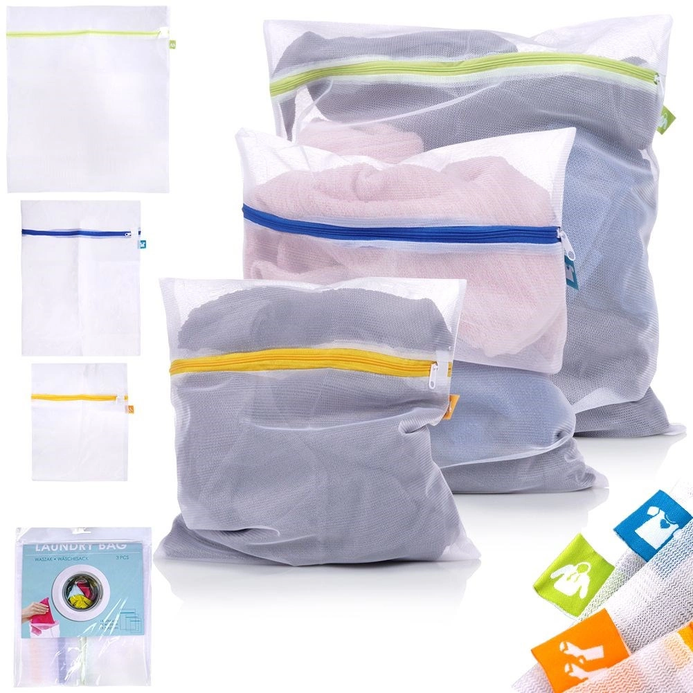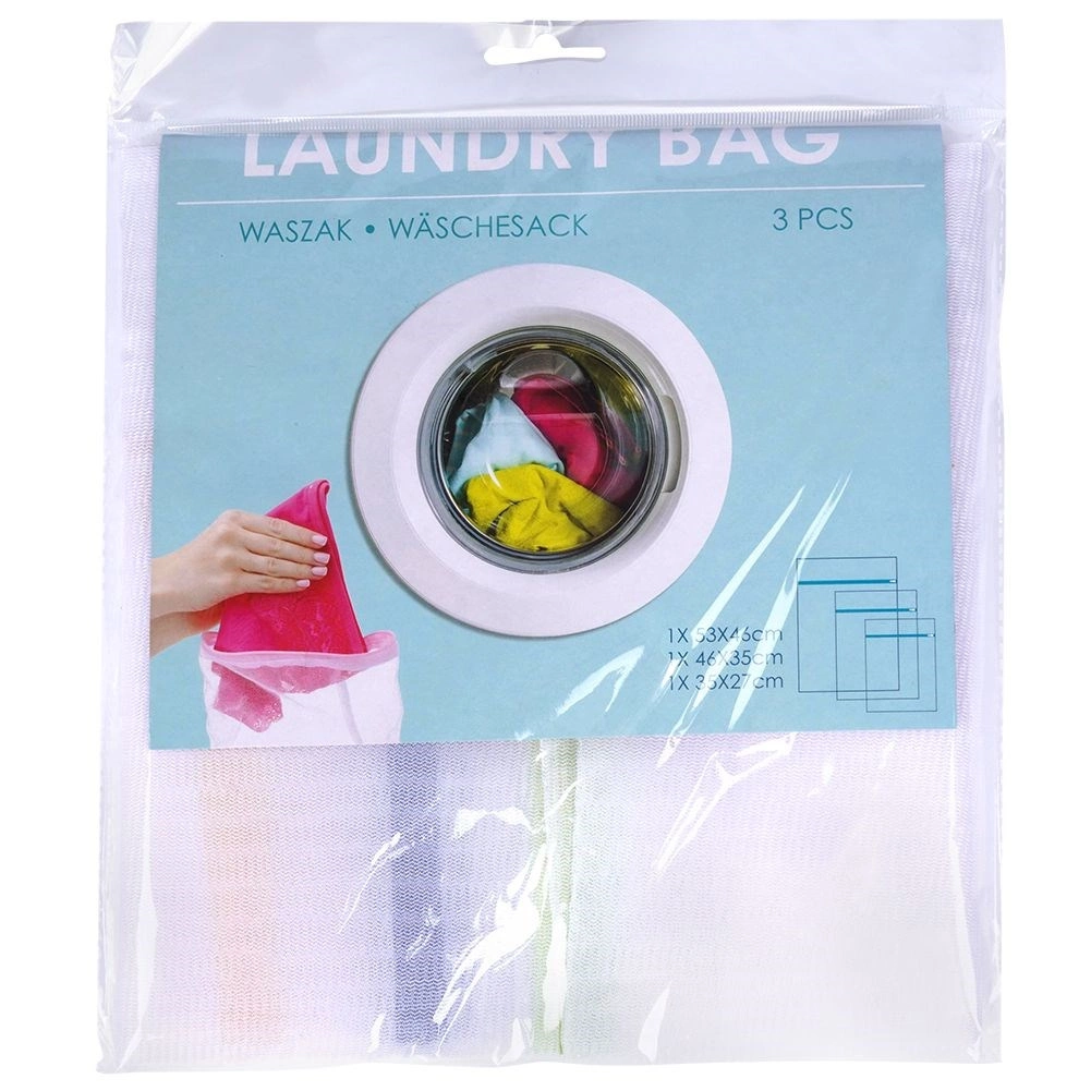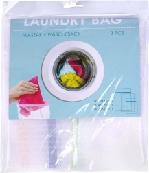 Praktyczny zestaw trzech woreczków do prania w różnych rozmiarach chroni delikatne i bieliznę przed uszkodzeniem i deformacją. Dzięki delikatnej siatce zapewniony jest swobodny przepływ wody i detergentu, a zapięcie na zamek bezpiecznie utrzymuje zawartość wewnątrz. Wytrzymałe, poliestrowe wykonanie szybko schnie i służy przez długie lata. Idealne do delikatnych tkanin, swetrów, bielizny oraz skarpet.