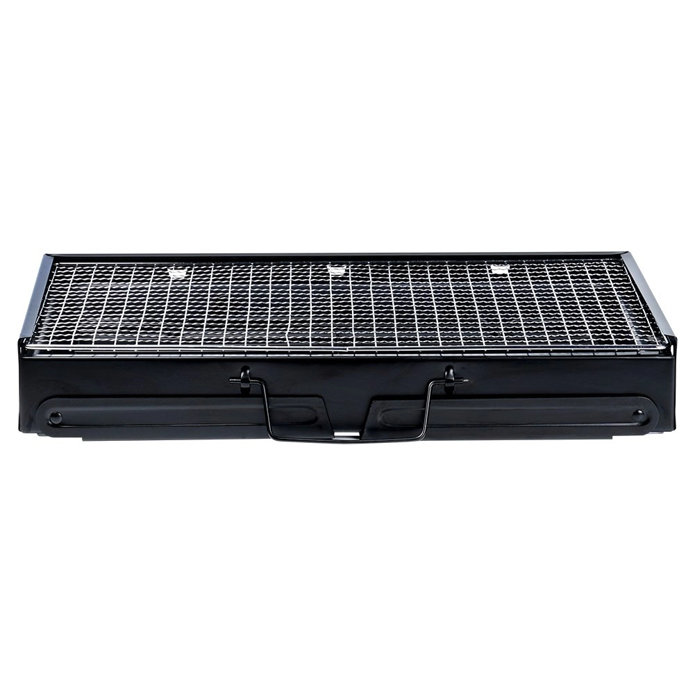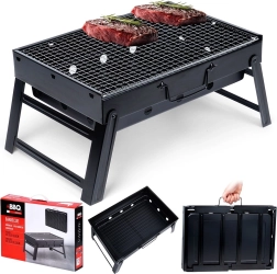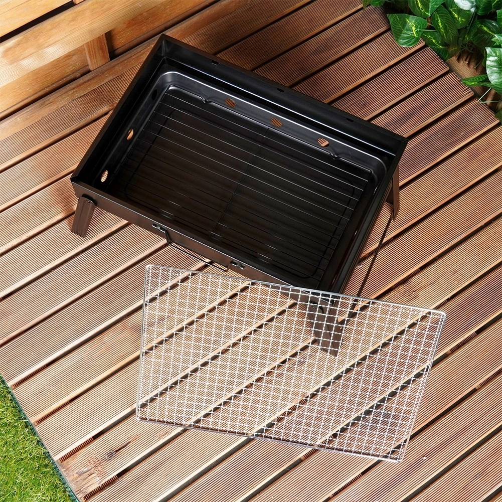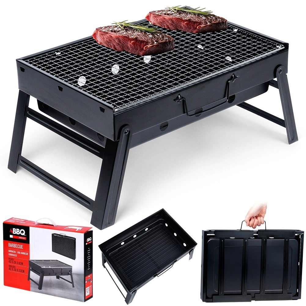 Kompaktowy przenośny grill na węgiel drzewny z rusztem 43 × 29 cm oferuje stabilną konstrukcję, szybkie złożenie do walizki z uchwytem oraz łatwe czyszczenie dzięki wyjmowanemu rusztowi i palenisku. Idealny na kemping, piknik lub ogród.