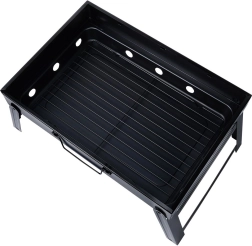 Składane nogi i solidny stalowy korpus zapewniają stabilność, a otwory wentylacyjne wspierają równomierne żarzenie się węgla.