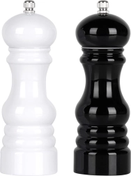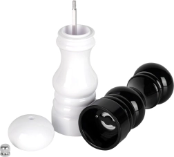 Dzięki temu eleganckiemu zestawowi ręcznych młynków zyskasz wszystko, czego potrzebujesz do świeżego doprawiania potraw bezpośrednio przy stole. Ceramiczny mechanizm zapewnia długą żywotność i równomierne mielenie pieprzu, soli oraz innych przypraw. Kolorystyka w czerni i bieli ułatwia natychmiastowe rozróżnienie zawartości.