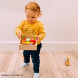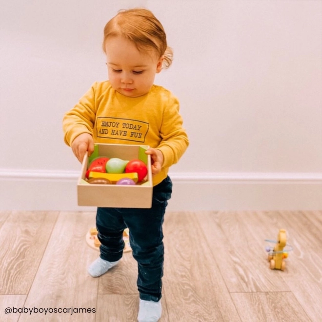 W tej skrzynce znajdziesz różnorodne drewniane owoce, takie jak banany, jabłka, truskawki czy gruszki. To świetna zabawka dla dzieci, która nie tylko bawi, ale także edukuje o znaczeniu zdrowej i zrównoważonej diety. Gra została zaprojektowana do rozwoju umiejętności manualnych, a podczas zabawy dzieci uczą się również, skąd pochodzi ich jedzenie i jak się je przygotowuje.