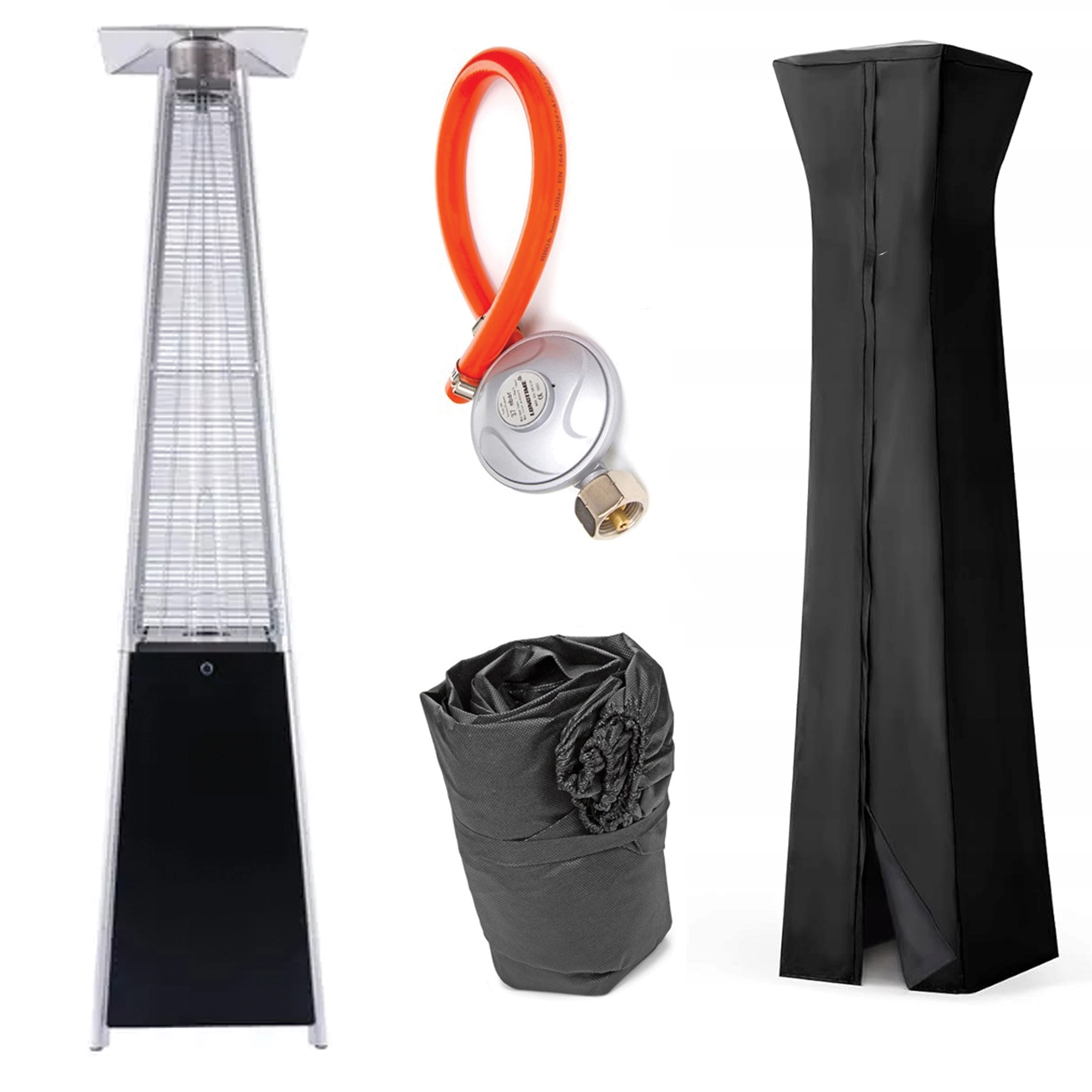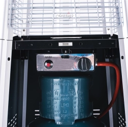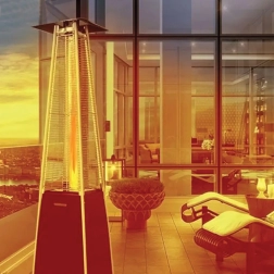 Stylowy zewnętrzny ogrzewacz typu „piramida” o mocy 13 kW zapewnia natychmiastowe ciepło oraz efektowny wygląd dzięki spiralnemu płomieniowi w kwarcowej tubie. Idealny na tarasy, ogrody, pawilony oraz ogródek restauracyjny. W zestawie znajduje się ochronny pokrowiec do bezpiecznego przechowywania.