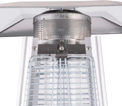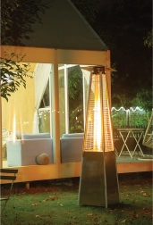 Ten gazowy ogrzewacz tarasowy w nowoczesnym, piramidowym wzornictwie zapewnia przyjemne ciepło i nastrojowe światło na wieczorne spotkania. Widoczny płomień w kwarcowej tubie jest chroniony metalową kratką i emituje promieniujące ciepło do otoczenia, dzięki czemu wydłużysz komfort przebywania na zewnątrz także w chłodniejsze dni.