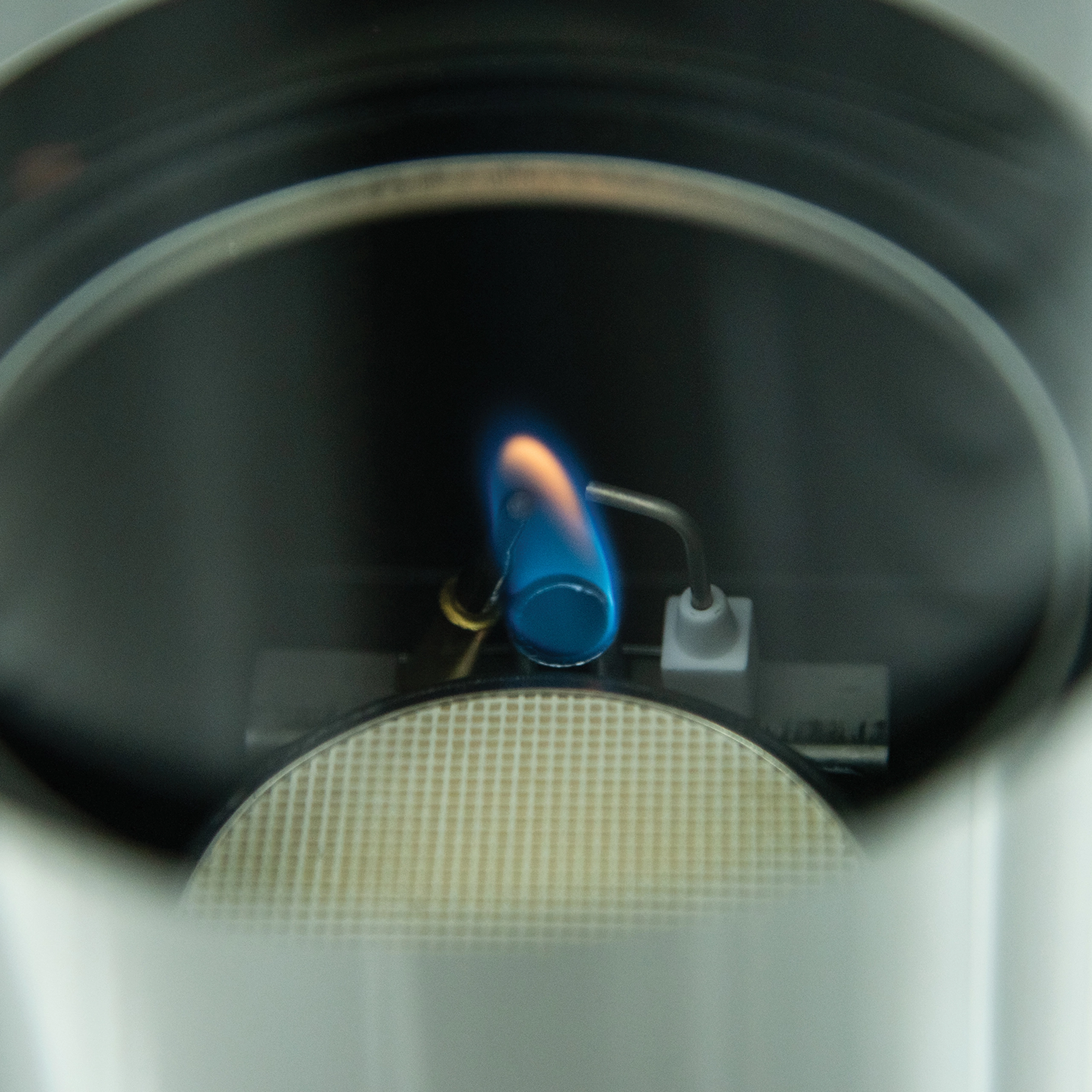 Widoczny spiralny płomień w kwarcowej tubie