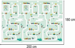 Dwustronna mata piankowa o wymiarach 180 × 200 × 1 cm tworzy bezpieczną i wygodną przestrzeń do zabawy, pierwszych obrotów i raczkowania. Gęsta pianka XPE tłumi uderzenia, chroni przed chłodem od podłogi, a antypowierzchnia zapewnia stabilność podczas ruchu. Jedna strona z uroczymi pandami, druga z motywem drogowym wspierają wyobraźnię i naukę.