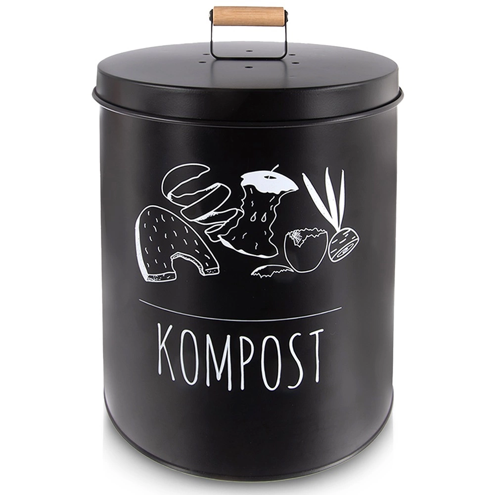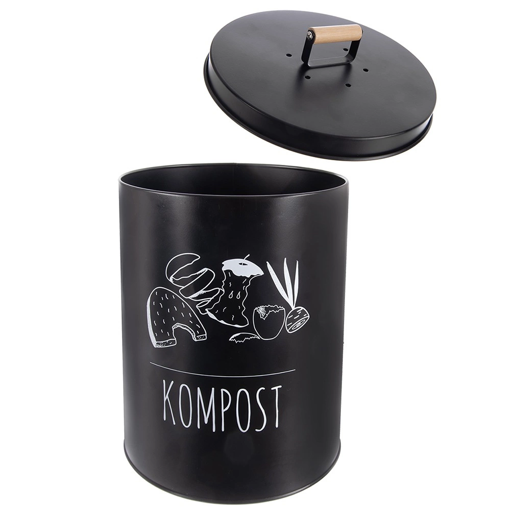 Wytrzymałe metalowe wykonanie w czarnym kolorze zapewnia długą żywotność i odporność podczas codziennego użytkowania. Szczelna pokrywa minimalizuje rozprzestrzenianie zapachów i ogranicza dostęp owadów, a drewniany uchwyt ułatwia przenoszenie. Pielęgnacja jest prosta – wystarczy przetrzeć wilgotną ściereczką.