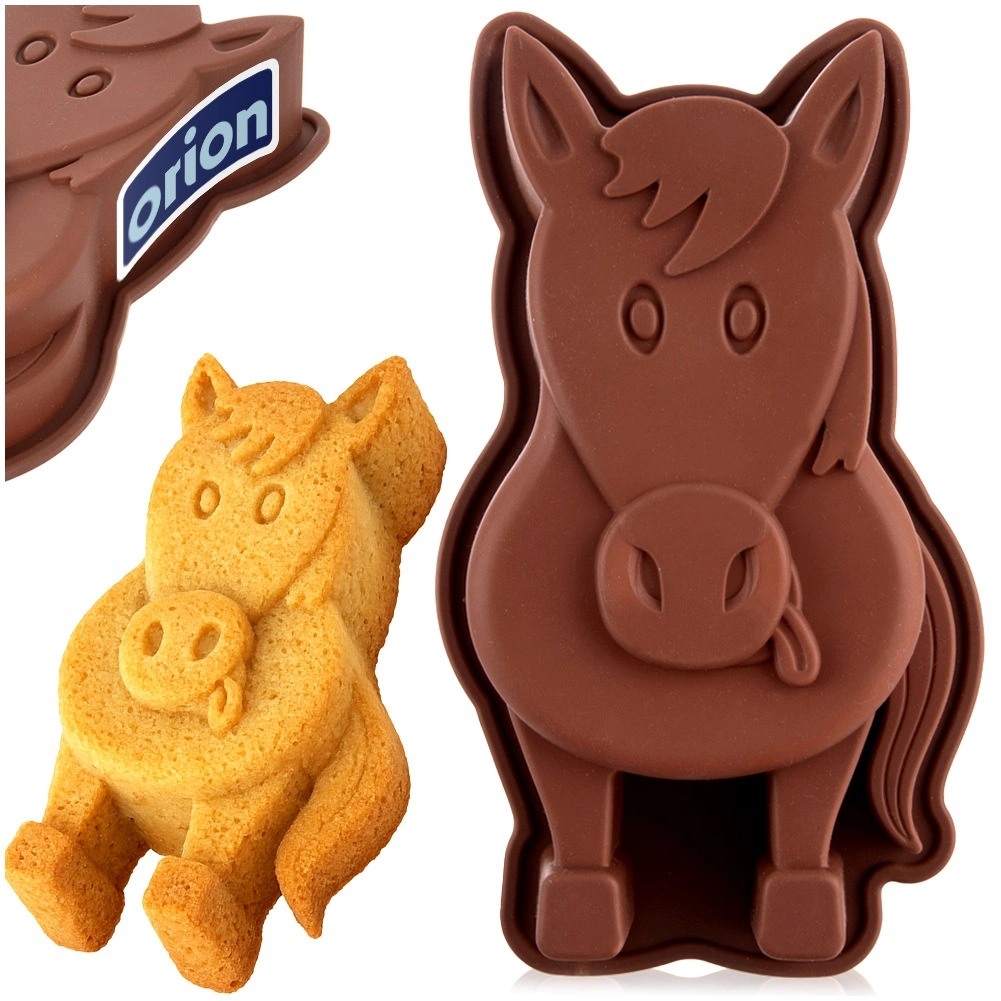 Zabawna silikonowa forma w kształcie konia do łatwego pieczenia oraz na schłodzone desery. Dzięki nieprzywierającemu i elastycznemu silikonowi ciasto łatwo się wyjmuje, forma równomiernie przewodzi ciepło i jest odporna od -40 °C do +220 °C. Świetna do babkowych ciast, biszkoptów, ucieranych i drożdżowych wypieków, a także na galaretki i kreatywne zabawy z dziećmi.