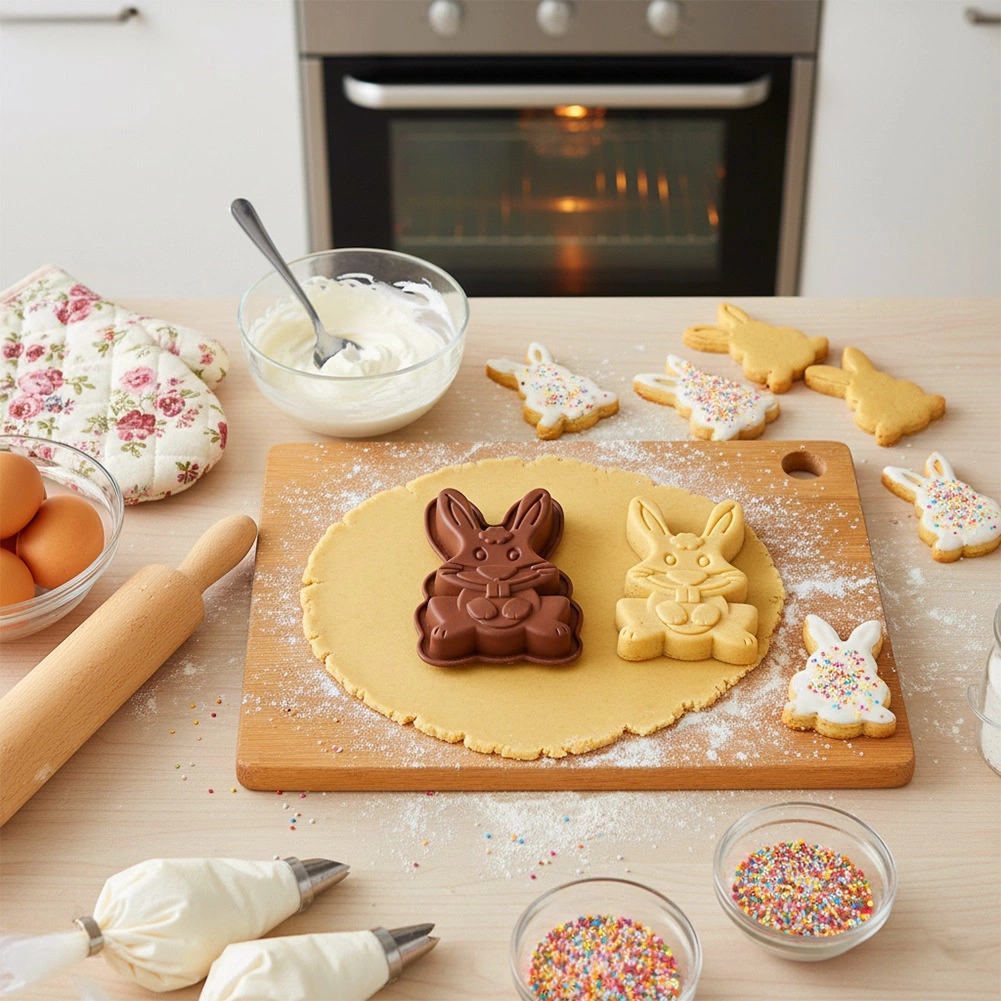 Ta praktyczna silikonowa forma w kształcie uroczego królika nada Twoim tortom, ciastom i galaretkom efektowny kształt z detalicznymi konturami uszu, łapek i pyszczka. Dzięki wysokiej jakości silikonowi jest elastyczna, nie odkształca się i równomiernie rozprowadza ciepło, więc ciasto piecze się niezawodnie i równomiernie.