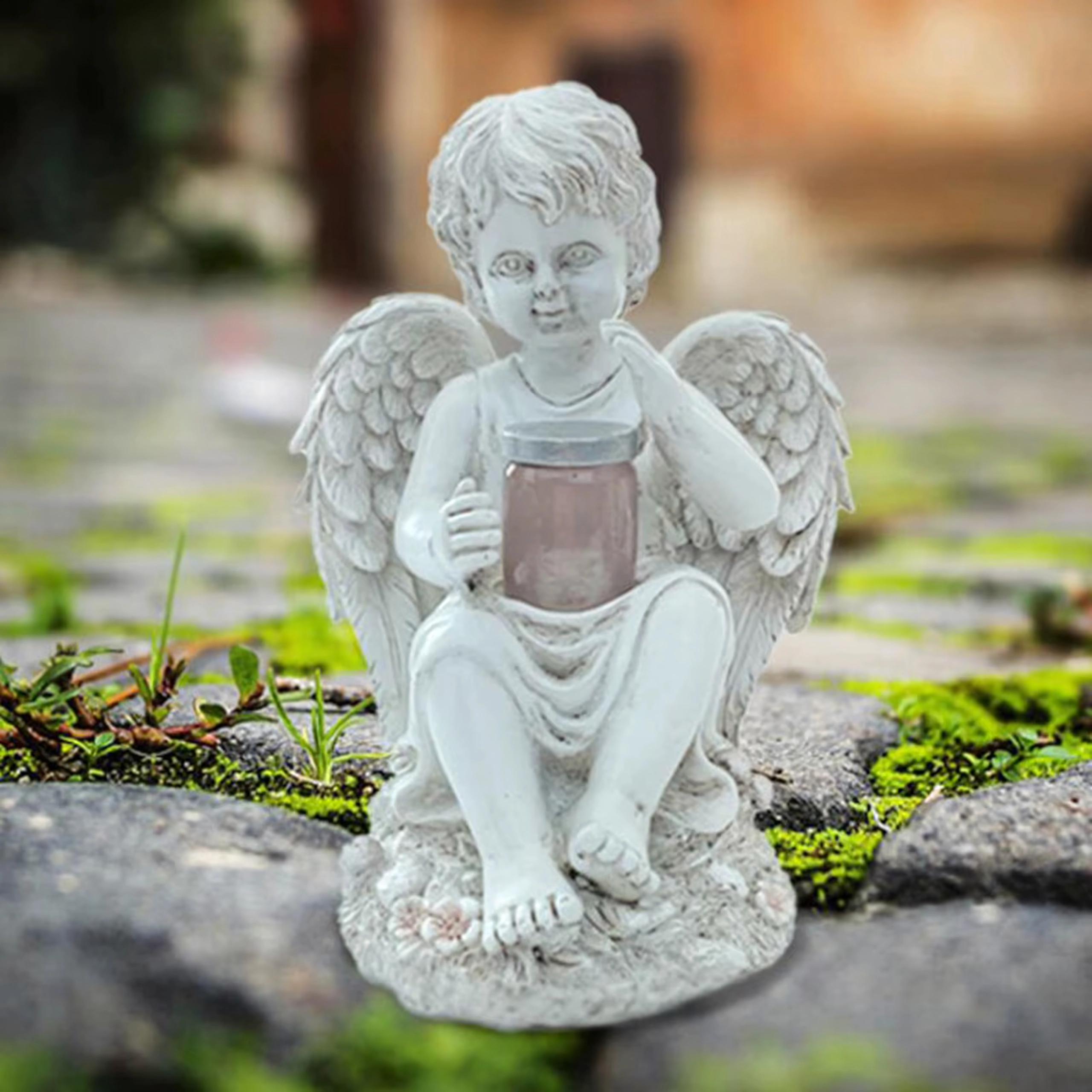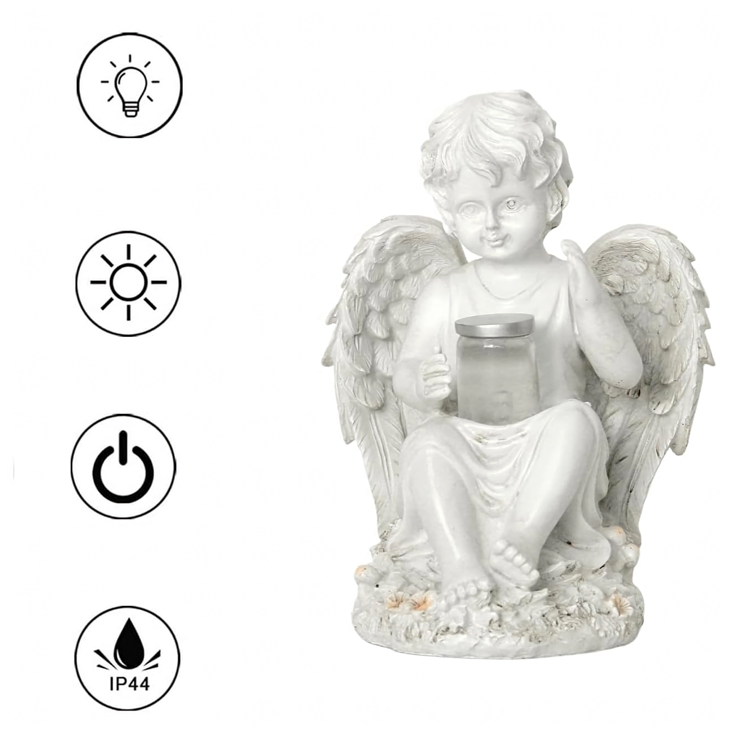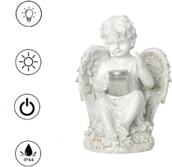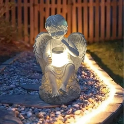 Stwórz spokojną i przytulną atmosferę z figurką anioła z solarnym oświetleniem LED. Detaliczne skrzydła, subtelne linie i dyskretne ciepłe światło czynią z niej elegancki dodatek do ogrodu, na taras, balkon oraz miejsce pamięci.