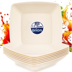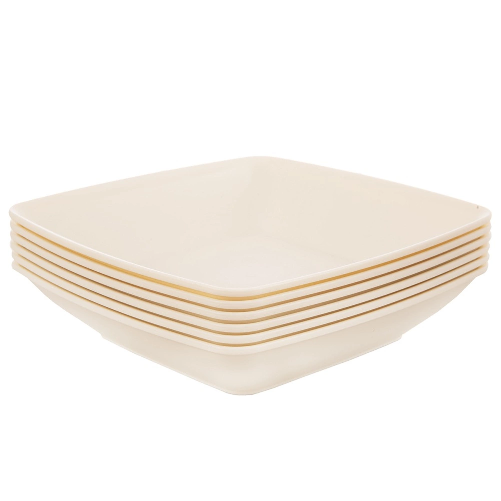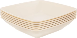 Praktyczny zestaw 6 głębokich talerzy w nowoczesnym kwadratowym kształcie do codziennego użytku w domu i na zewnątrz. Talerze o wymiarach 17,5 × 17,5 × 4,7 cm i pojemności 500 ml są lekkie, wytrzymałe i łatwe w utrzymaniu. Nadają się do kuchenki mikrofalowej i zmywarki, idealne na zupy, makaron, sałatki oraz dania jednogarnkowe. Wysokiej jakości materiał w kremowym kolorze zapewnia odporność na uderzenia i pęknięcia.