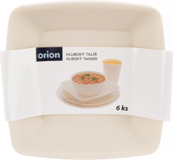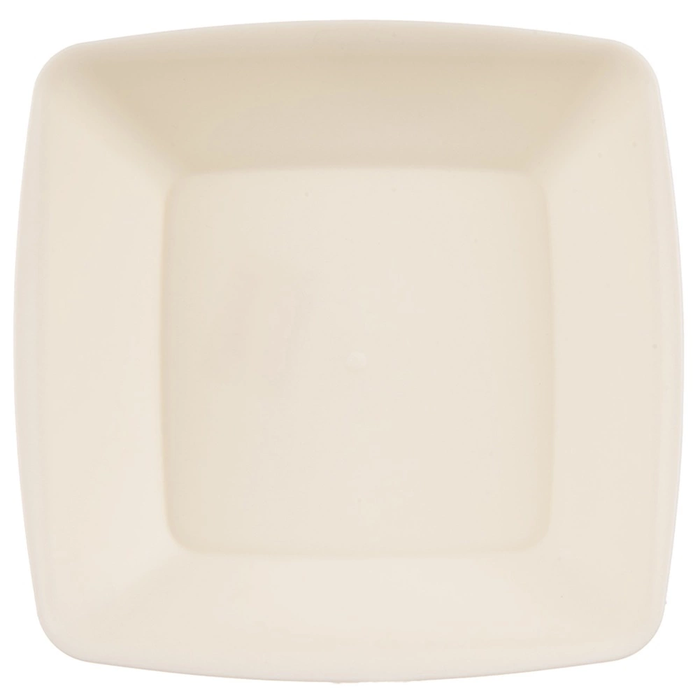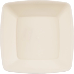Kwadratowe głębokie talerze w kremowym kolorze łatwo układają się jeden na drugim, oszczędzają miejsce i są odporne na uderzenia oraz upadki.