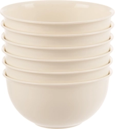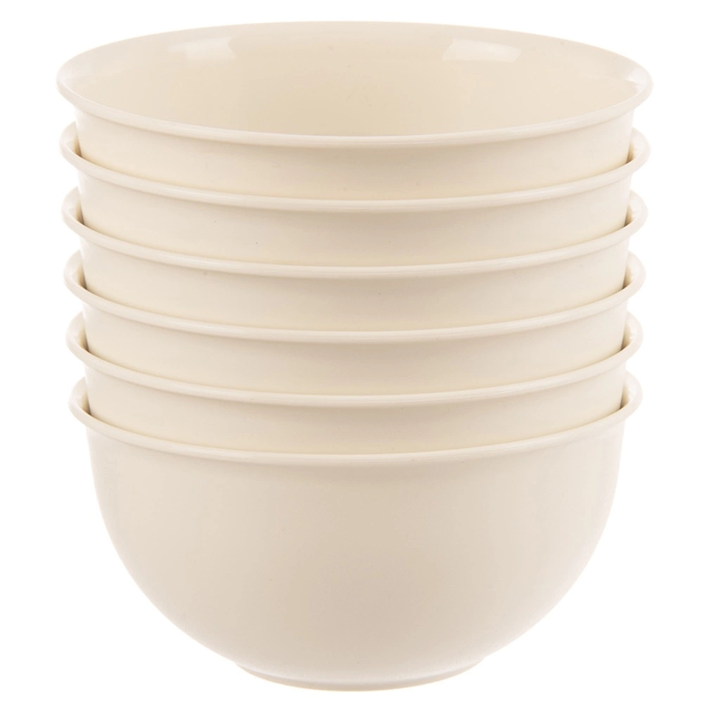 Zestaw 6 plastikowych misek SANDY w eleganckim kremowym kolorze łączy wytrzymałość z niską wagą. Każda miska ma wymiary 13 × 6 cm i pojemność 500 ml – idealny rozmiar do zup, płatków, sałatek oraz małych porcji deserów. Dzięki gładkiej powierzchni łatwo się je czyści, a minimalistyczny design pasuje do każdej kuchni.