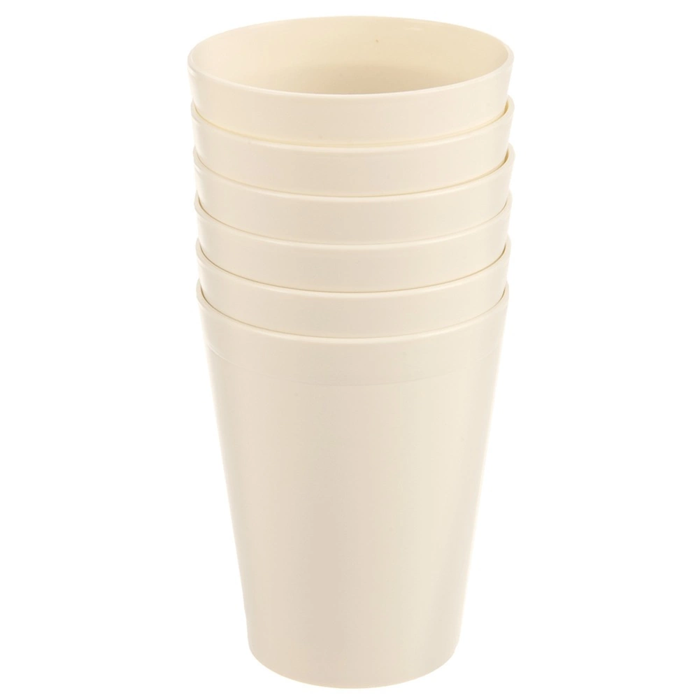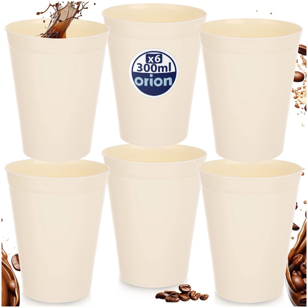 Praktyczny zestaw sześciu lekkich i wytrzymałych kubków o pojemności 300 ml jest idealny do codziennego użytku w domu i na zewnątrz. Odpowiednie do zimnych i gorących napojów, do kuchenki mikrofalowej i do zmywarki. Wytrzymałe plastikowe wykonanie w kremowym kolorze oszczędza miejsce dzięki możliwości sztaplowania – świetne na piknik, biwak i spotkania w ogrodzie.