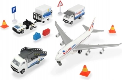 - Kompletny zestaw: samolot, 3 pojazdy lotniskowe i akcesoria