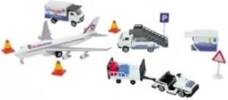 Ten szczegółowo wykonany zestaw lotniskowy oferuje dzieciom wszystko, czego potrzebują do własnej obsługi małego lotniska. W komplecie duży samolot, dwa pojazdy serwisowe i auto cateringowe, uzupełnione niezbędnymi akcesoriami i znakami dla bezpiecznego ruchu.
