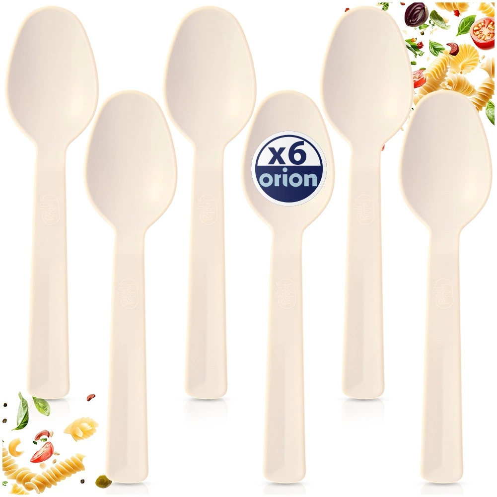 Zestaw 6 łyżek stołowych SANDY w eleganckim kremowym kolorze to niezawodny wybór do codziennych posiłków, na pikniki i kemping. Dzięki wysokiej jakości plastikowi są lekkie, a jednocześnie solidne oraz odporne na pęknięcia i zarysowania. Każda łyżka ma długość 14 cm, odpowiednią dla dorosłych i dzieci.