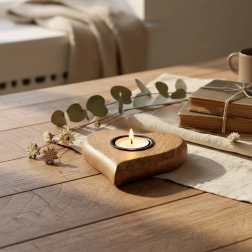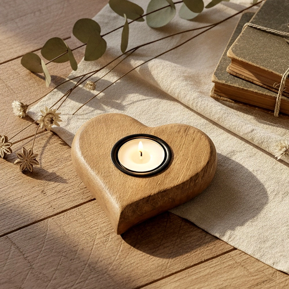 Elegancki drewniany świecznik z drewna mango w romantycznym kształcie serca stworzy przytulną atmosferę w salonie, sypialni i łazience. Naturalne usłojenie drewna oraz czarna metalowa wkładka tworzą ponadczasowe połączenie, które pasuje do wnętrz skandynawskich, rustykalnych i nowoczesnych.
