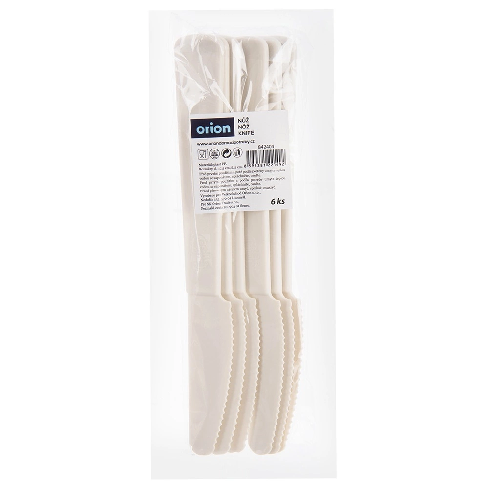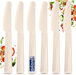 Praktyczny zestaw sześciu lekkich, a zarazem wytrzymałych noży do codziennego używania w domu i na zewnątrz. Dzięki delikatnie ząbkowanej krawędzi bezpiecznie kroją pieczywo, owoce i warzywa. Kremowy kolor pasuje do każdej zastawy, bezpieczny kształt zapewnia wygodne użytkowanie, a możliwość mycia w zmywarce ułatwia pielęgnację. Oryginalny produkt czeskiej marki ORION.