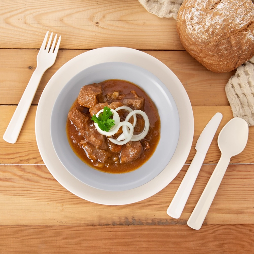 Ergonomiczny kształt z delikatnie ząbkowanym ostrzem zapewnia pewny chwyt i wygodne krojenie, a zaokrąglona końcówka zwiększa bezpieczeństwo podczas używania w domu i w podróży. Łatwa pielęgnacja dzięki możliwości mycia w zmywarce oszczędza czas po rodzinnych spotkaniach i wydarzeniach na świeżym powietrzu.