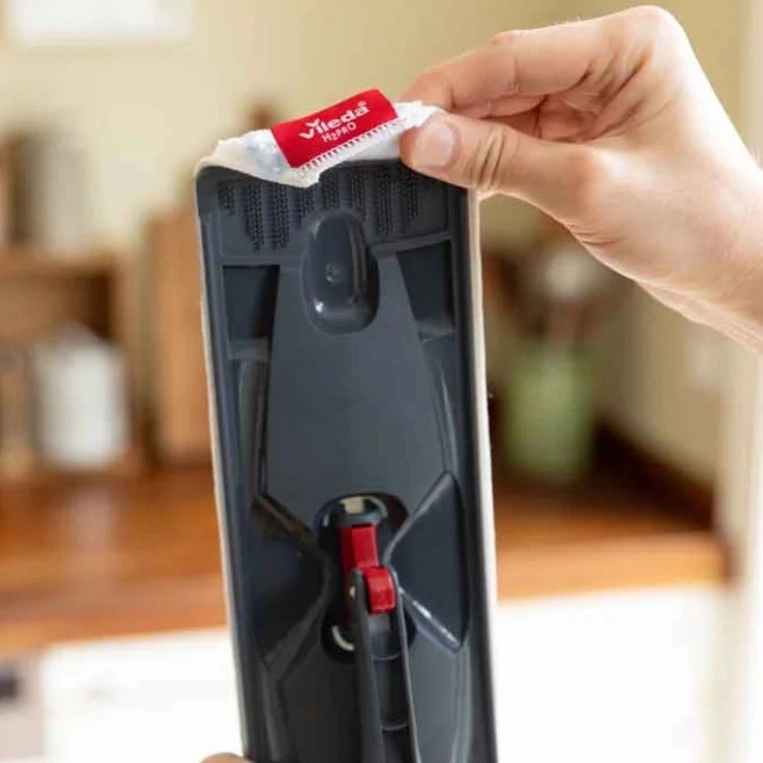 Nakład łatwo montuje się na podstawie mopa i stabilnie trzyma podczas sprzątania. Kompatybilny wyłącznie z mopem Vileda H2Pro.