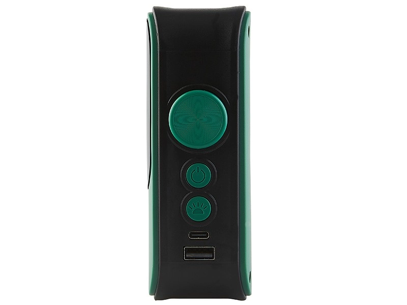 Wbudowana bateria 4000 mAh działa jako powerbank (5 V / 1 A), a zintegrowana latarka LED ułatwia pracę w ciemności.