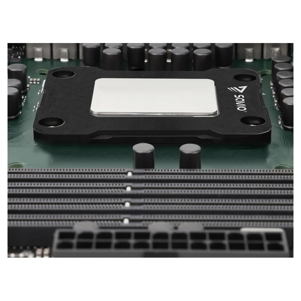 Aluminiowy stop rozkłada nacisk równomiernie na całej powierzchni, chroniąc procesor i płytę główną oraz zwiększając efektywność chłodzenia.