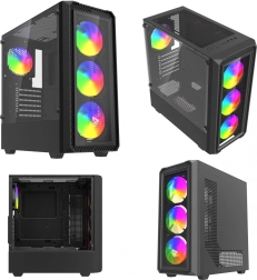 - 4× 120 mm wentylator RGB z 4‑pin PWM w zestawie