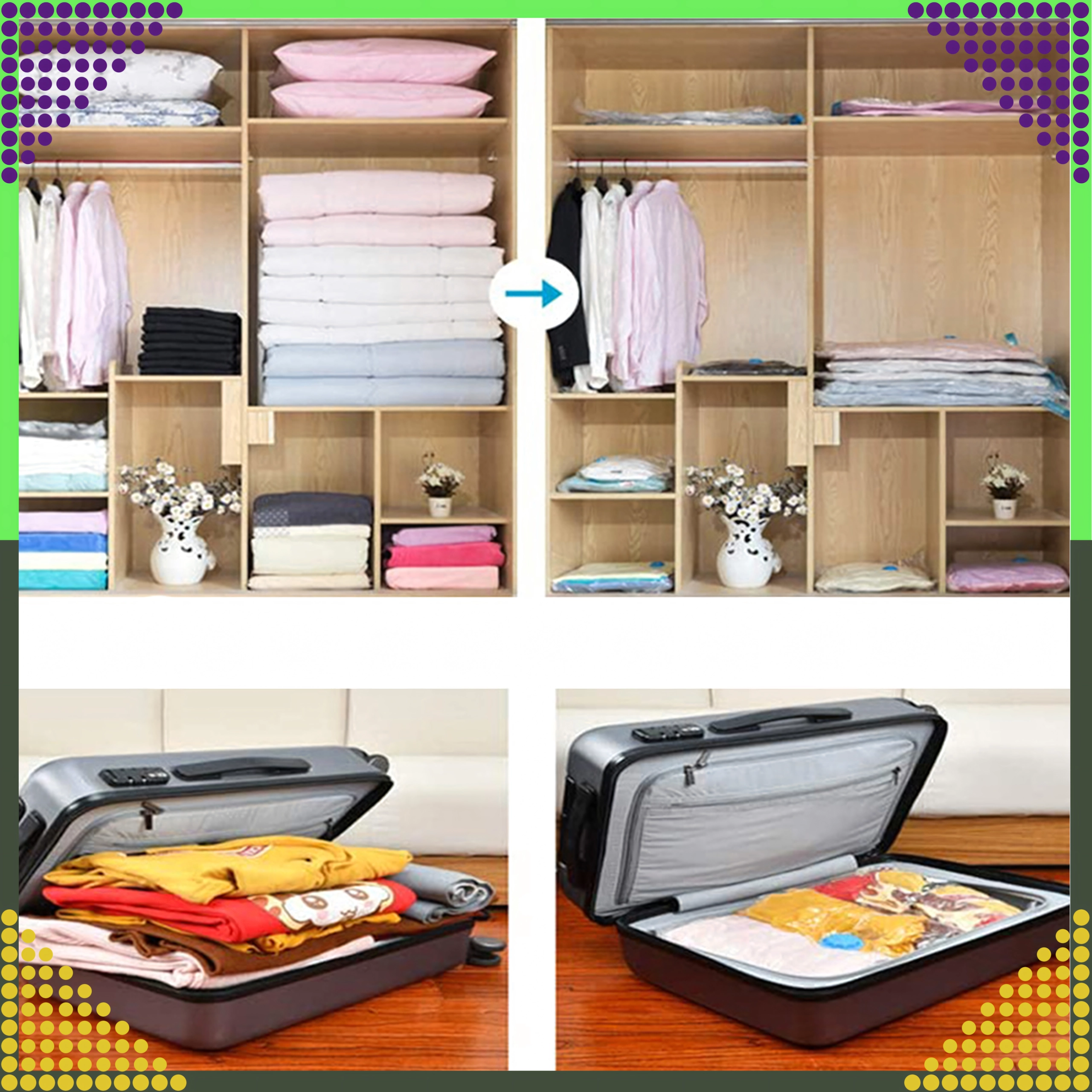 - Uniwersalne zastosowanie: szafy, pod łóżko, strych, piwnica i podróże