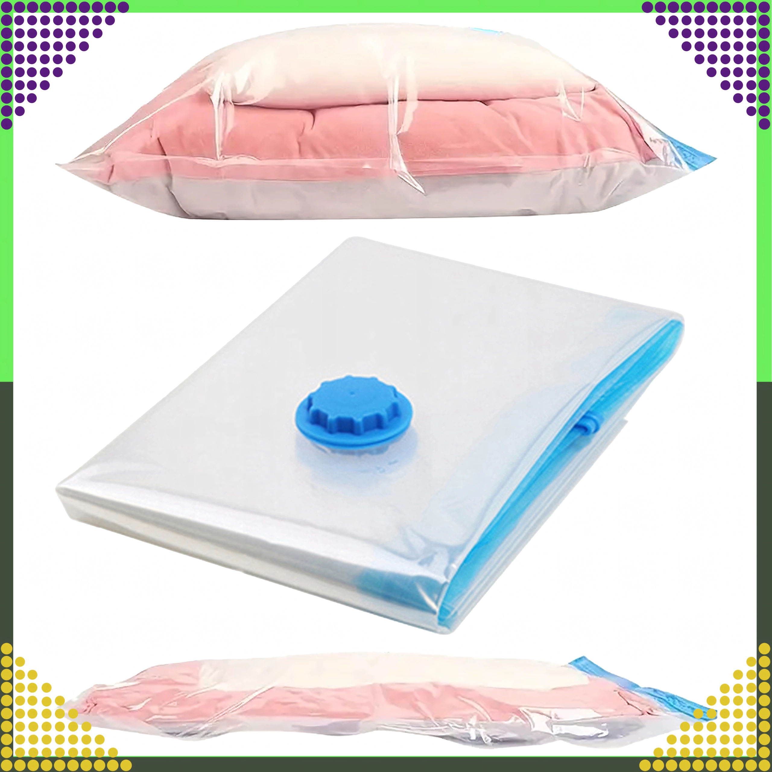 Uporządkuj szafę i zaoszczędź miejsce dzięki praktycznemu workowi próżniowemu o wymiarach 40 × 60 cm. Zapewnia hermetyczne i wodoodporne przechowywanie, chroni przed wilgocią, kurzem i zapachem, a także jest wielokrotnego użytku do ubrań, kołder, poduszek czy koców.
